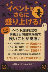 いよいよ明日は、皆さまに楽しんでいただけるハロウィン(ちょっと早いけど)イベントを開催いたします!