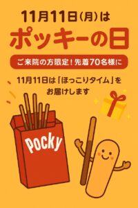 \ご来院の方限定!先着70名様にポッキーをプレゼント/